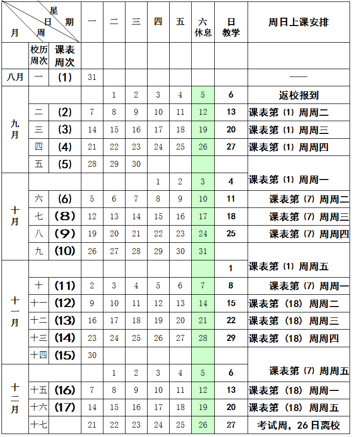 1.全日制研究生9月6日返校报到,9月7日开始选导师、选课和线下教学。本学期每周一至周五、周日上课,周六休息。